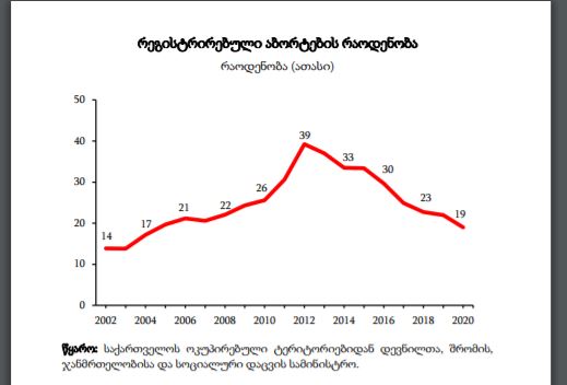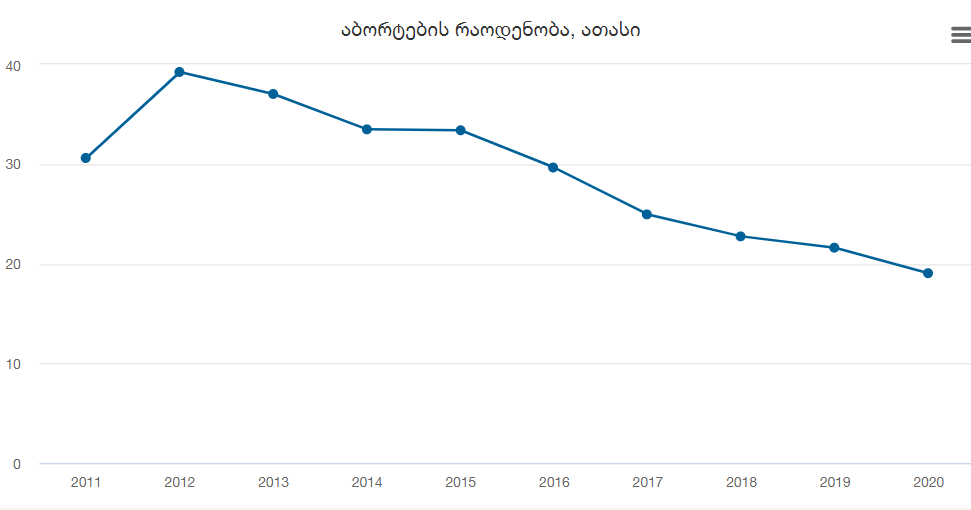 წინა წლების სტატისტიკას თუ გადავხედავთ, საქართველოში აბორტის შემთხვევებმა იკლო, მაგალითად, 2019 წელს, ამავე სტატისტიკური მონაცემების თანახმად, 21 000 ზე მეტი აბორტია დაფიქსირებული. კიდევ უფრო დიდია მონაცემი 2016, 2017 და 2018 წლებში.