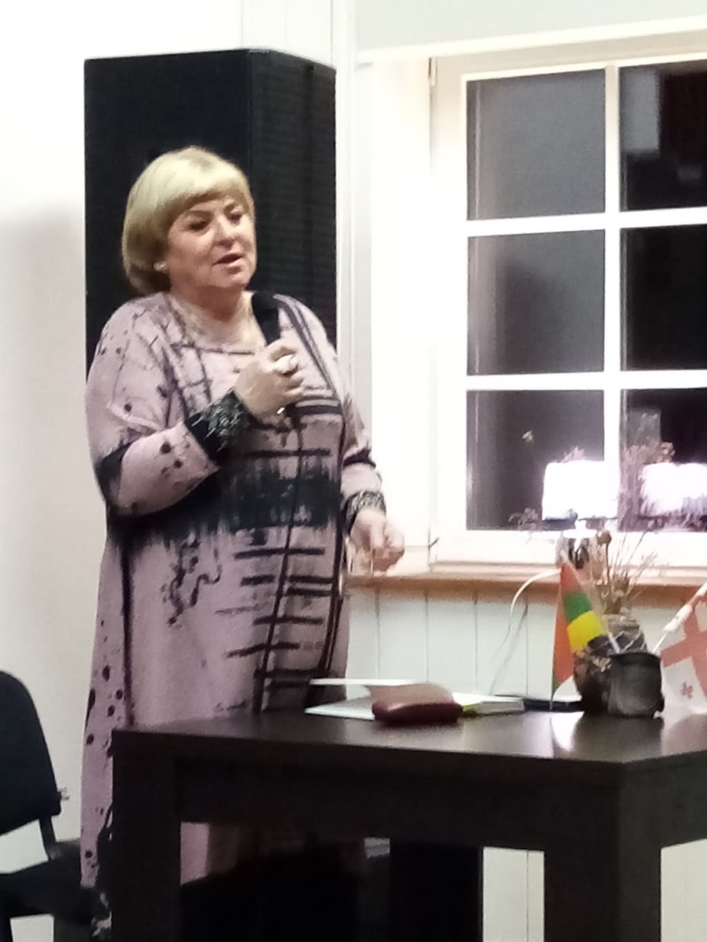 დაუვიწყარი იყო ჯერ ოჯახურ სადილზე ქალბატონ ვიოლეტას ბავშვურ თვალებში აბრჭყვიალებული გულწრფელი ცრემლები, როდესაც ის ჩვენს სადღეგრძელოს ამბობდა, მოგვიანებით კი ქალაქის ბიბლიოთეკაში გამართულ საღამოზე ყელში ჩაბრუნებული ცრემლებით ნათქვამი უამრავი კეთილი სიტყვა ჩვენს ქვეყანასა და ქართველ მეგობრებზე. ამ განწყობას კი, მართლა აგვრგვინებდა ფართო მაგიდის შუაგულში მდგარი ორი პაწია, ძალიან ძვირფასი და საყვარელი დროშა.