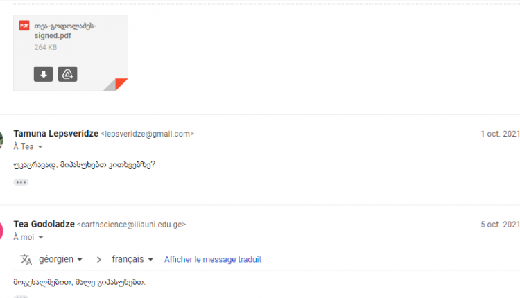 “არ ვიცნობ არცერთ ჟურნალისტს ამ საინფორმაციო სააგენტოდან. თქვენ (სააგენტო) ავრცელებთ სტატიას, სადაც ერთი სიტყვაც კი არ არის მართალი და თქვენი ჟურნალისტი არც კი დამკავშირებია. სტატია ეხება ენკას და გეოფიზიკის ინსტიტუტის დანაშაულებრივ საქმიანობას წაგლიჯოს ჩვენს გუნდს მონაცემები და ფული აკეთოს უკანონოდ დიდი ალბათობით შეკვეთილი სტატიაა. როგორ მოვიქცეთ ახლა ?! აიღებთ სტატიას და შევწყვეტთ ბრძოლას?”