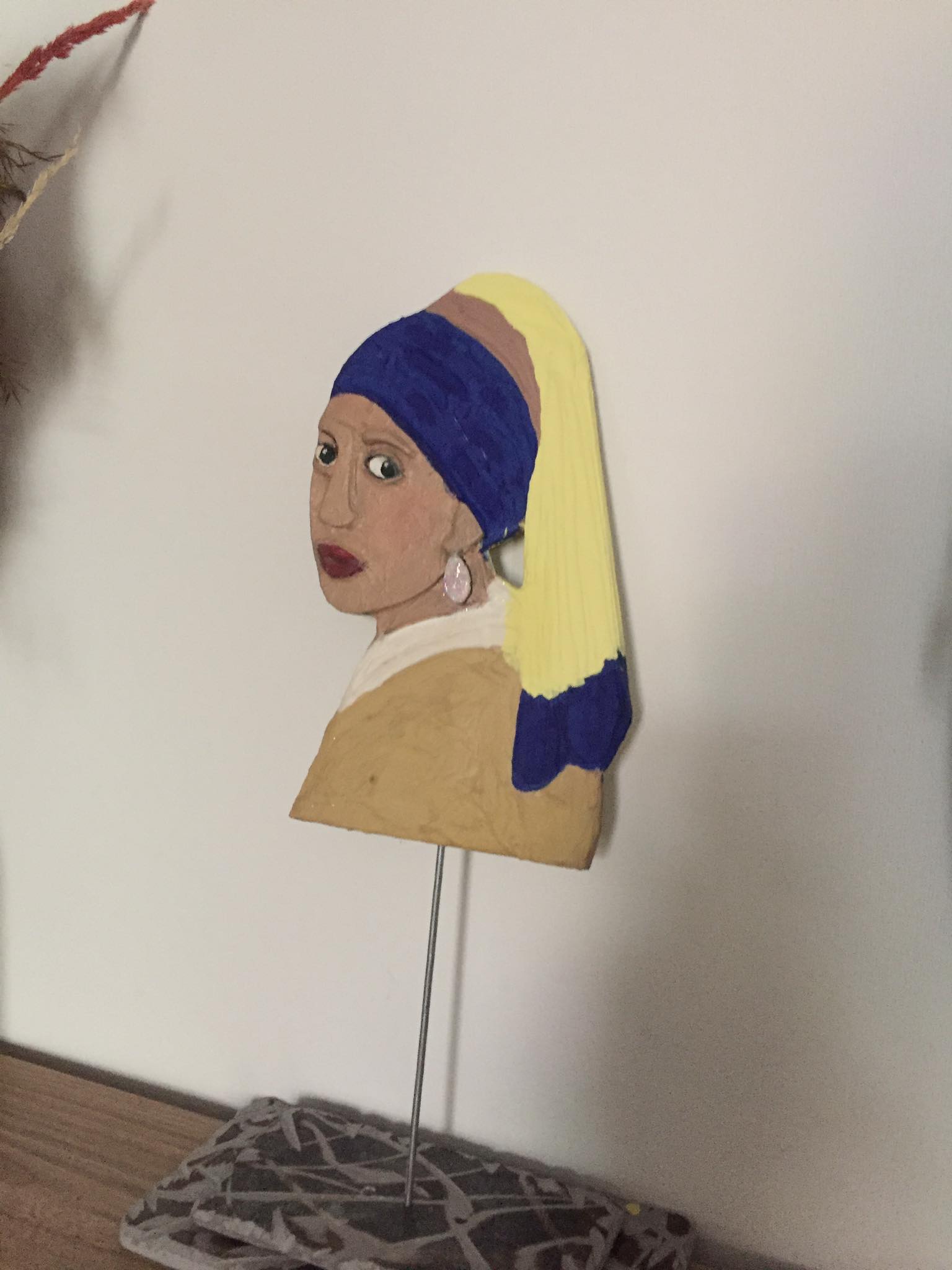 – ბოლოს შევქმენით ვერმეერის „გოგონა მარგალიტის საყურით“, „გობისეული“ ინტერპრეტაცია. იმდენად მხიბლავს ეს კამერული პორტრეტი, ცდუნებას ვერ გავუძელი და კუბიზმიდან ბაროკოში გადავინაცვლე. ვფიქრობ, ამ ხაზსაც გავაგრძელებ. ფავორიტებში ბოტიჩელიც მყავს, თუ მოვახერხე მუყაოს რენესანსული მორჯულება.