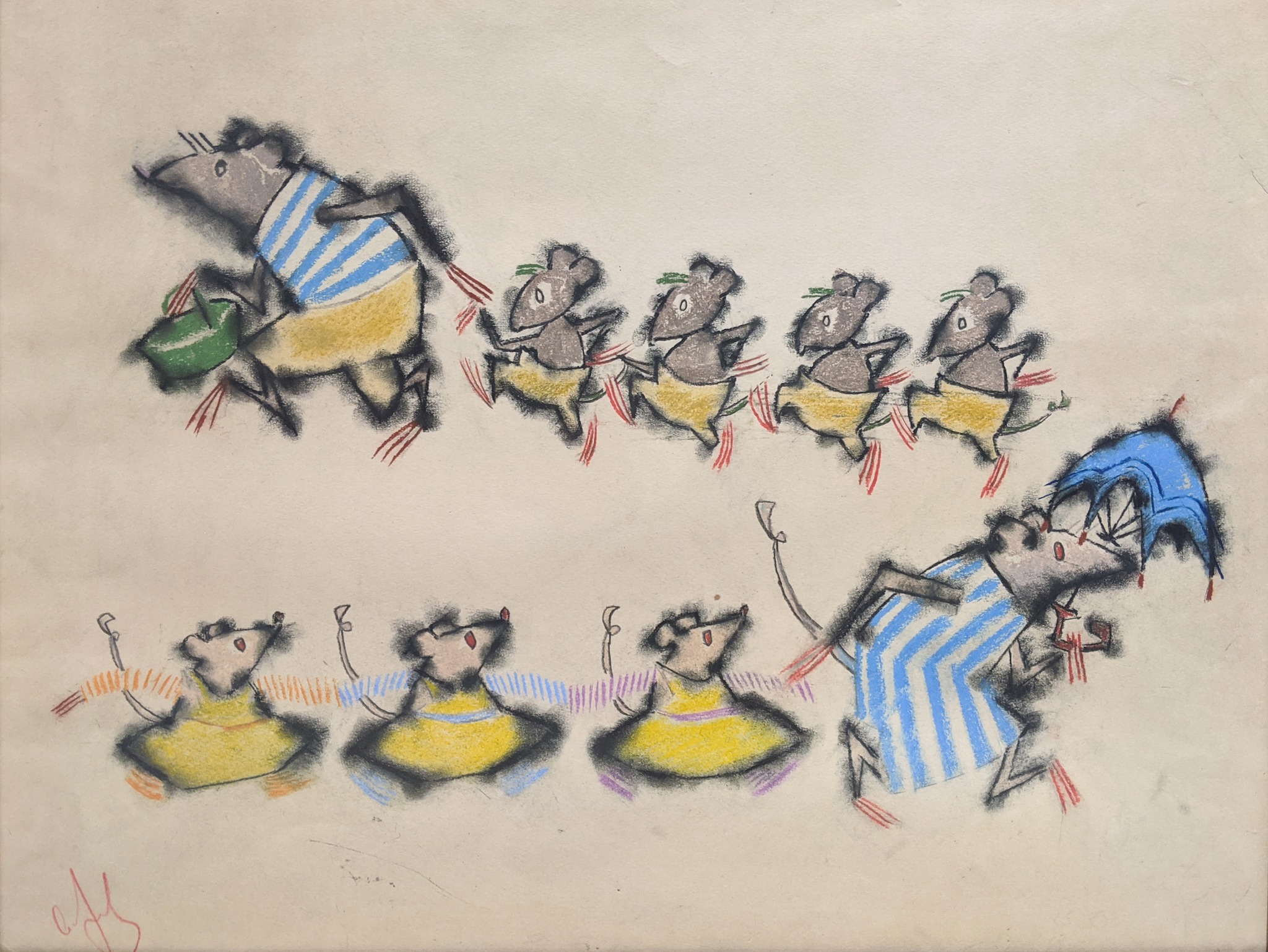 ეთნოტიპებზე შექმნილ ნამუშევრებში იკითხება ანიმაციური და ილუსტრაციული ესთეტიკა, ხასიათის სწრაფი ფიქსაცია და გროტესკი.