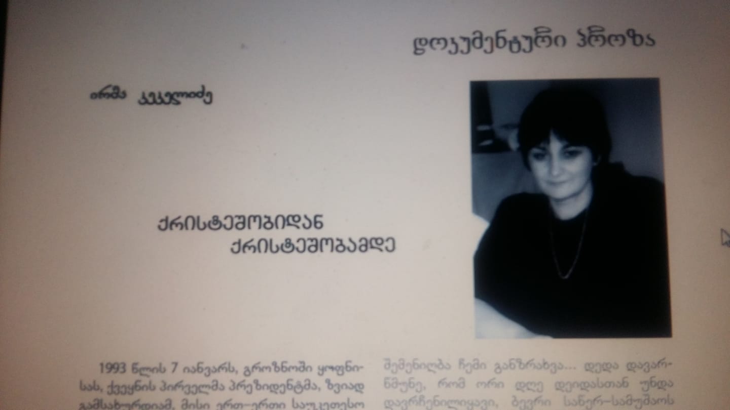 – გამოცემული გაქვთ მოთხრობების და პიესების რამდენიმე კრებული… მოთხრობები, პიესები, პუბლიცისტური და პოლიტიკური წერილები იბეჭდებოდა და იბეჭდება უამრავ ჟურნალსა და გაზეთში… არცთუ დიდი ხნის წინ ჟურნალ „რიწაში“ გამოქვეყნდა თქვენი ,,ქრისტეშობიდან ქრისტეშობამდე”, რომელიც ნამდვილ ამბავს ეფუძნება და ზვიად გამსახურდიას შეხვდით… როგორ დაიწერა ეს ნაწარმოები?