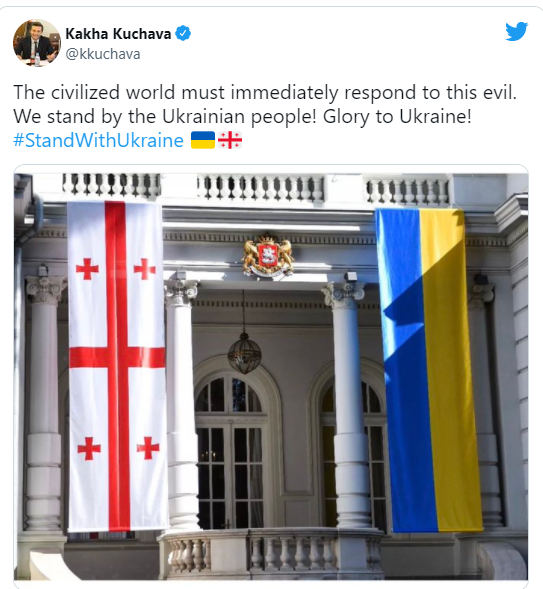 „ცივილიზებულმა სამყარომ დაუყოვნებლივ უნდა უპასუხოს ამ ბოროტებას. ჩვენ ვდგავართ უკრაინელი ხალხის გვერდით. დიდება უკრაინას!“, – წერს კახა კუჭავა.
