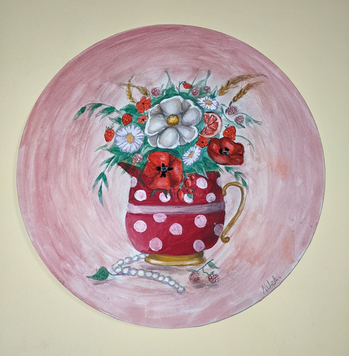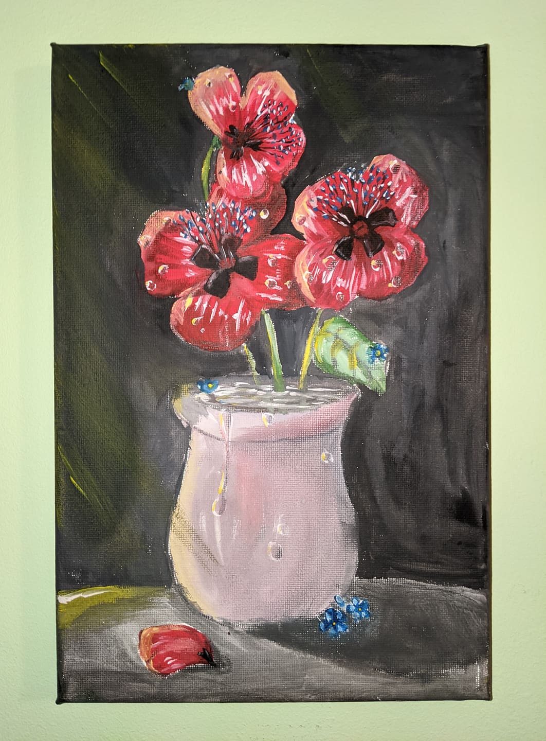 – ძალიან განვიცადე ბათუმის დიდი ტრაგედია, ამ ნახატზე ყაყაჩოების სახით დახატულია იქ დაღუპული ადამიანები, დაბლა ჩამოყრილი კესანები – დაღუპული ბავშვები, შავი ფონი და ცრემლებით სავსე ლარნაკი კი მთელი ქვეყნის სევდას გამოხატავს.