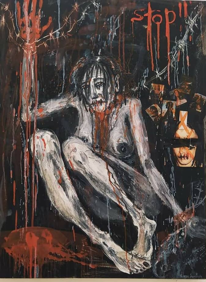 დღევანდელ ცხოვრებაში ხშირია ქალებისადმი ძალადობის ფაქტები. ამ საკითხზე ჩემი ნამუშევრით გადმოვეცი ჩემი მწუხარება. იმის გამო, რომ ძალადობა შავ ფერთან და სისხლისღვრასთან ასოცირდება, გადავწყვიტე, ნამუშევარიც სწორად შავ, თეთრ და წითელ ფერებში შემესრულებინა. ვფიქრობ, ნამუშევარმა სწორად გადმოსცა ის მესიჯი, რომელი იდეის მატარებელიც ის იყო.
