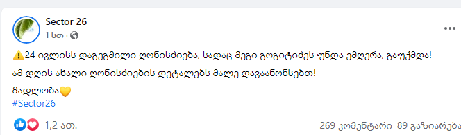 “24 ივლისს დაგეგმილი ღონისძიება, სადაც უნდა ემღერა მეგი გოგოტიძეს გაუქმდა! ამ დღის ახალი ღონისძიების დეტალებს მალე დავაანონსებთ”, – წერია კლუბის განცხადებაში.