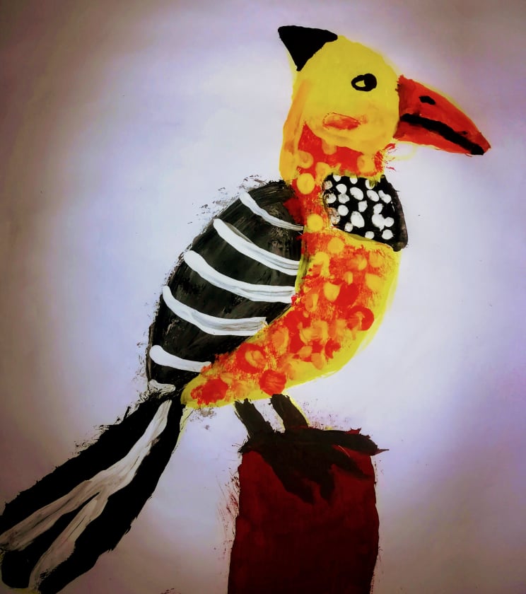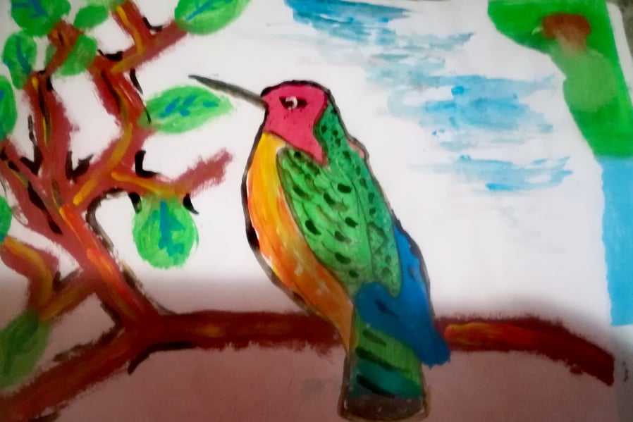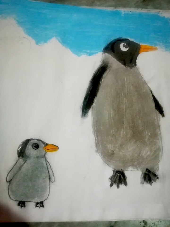– პირველი ნახატია „პინგვინი დედასთან“… ძალიან მიყვარს ცხოველები და ვხატავ მათ… ფრინველებიც…