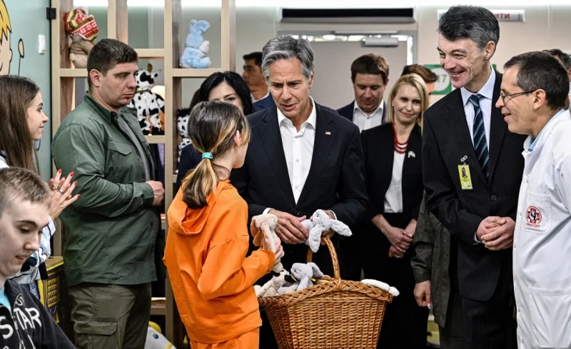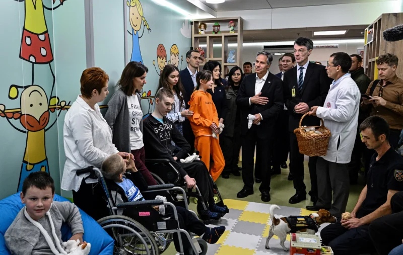 ენტონი ბლინკენმა კიევში ბავშვთა საავადმყოფო მოინახულა (ფოტო)