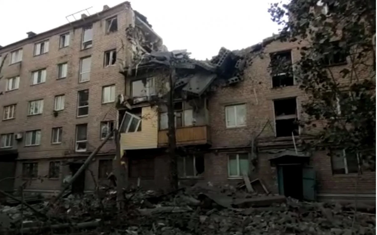 სარაკეტო იერიშის შედეგად, მაღალსართულიანი კორპუსის სამი სადარბაზოა ჩამონგრეული.
