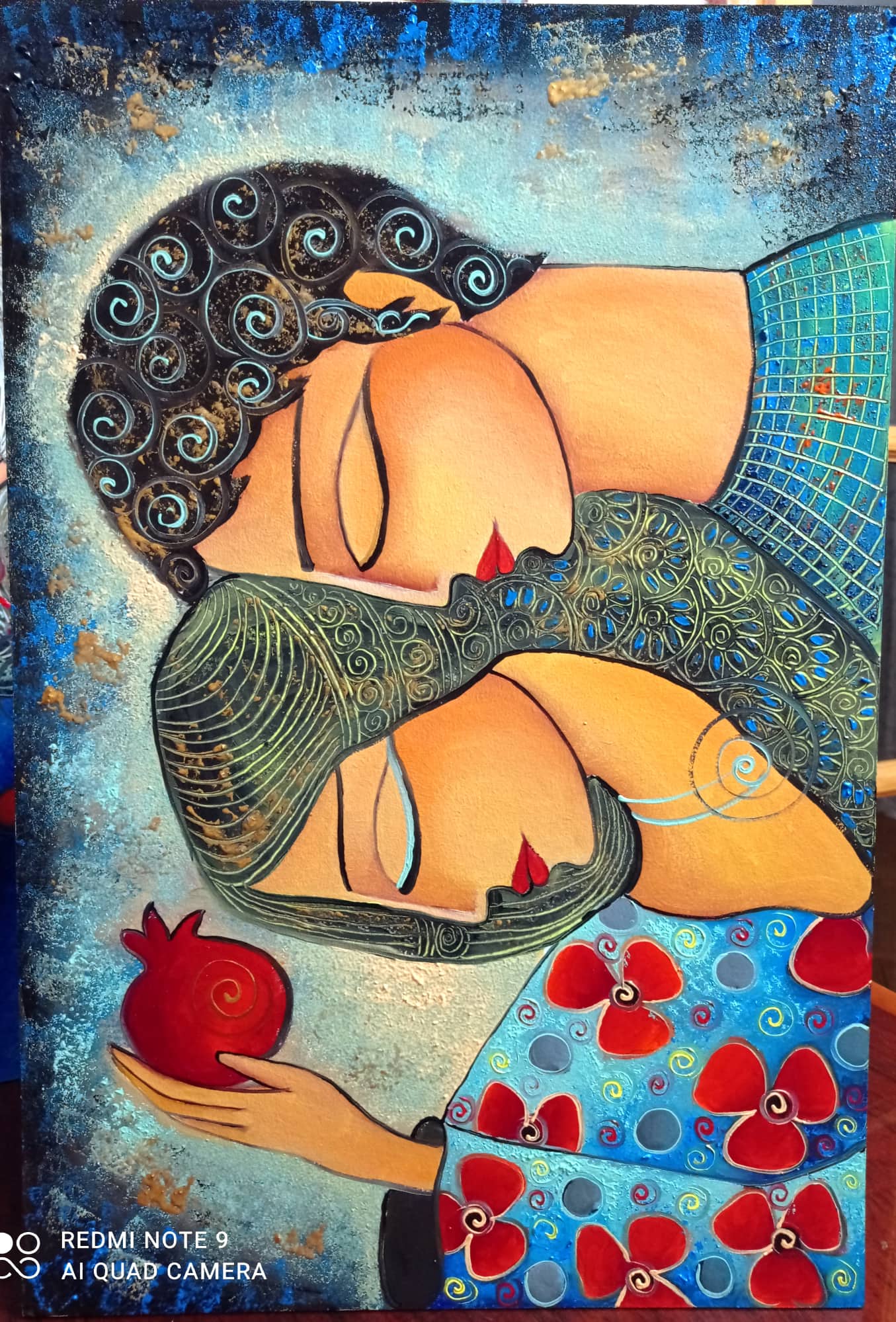 – დომინირებს ლურჯი და ბროწეულისფერი ფერები… ხასიათი კი თვალებითაა გადმოცემული. ალბათ სწორედ თვალებს უთმობთ დიდ დროს?