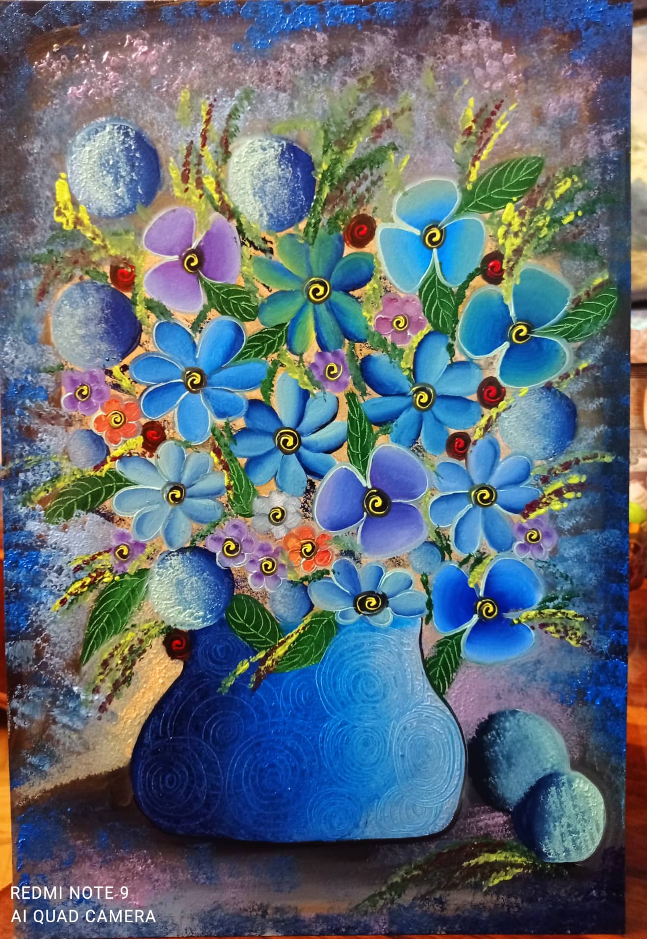 ჩემი შთაგონების წყარო ჩემი ოჯახია, სწორედ ისეთი ფერადი და ხასხასა, როგორიც ჩემი შემოქმედებაა. ვმუშაობ ზეთის საღებავებით… უსასრულოდ შემიძლია ვხატო… ისე დამათენდეს, დაღლაც კი ვერ ვიგრძნო.