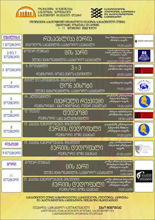 1 ნოემბერს, რუსთაველის ეროვნული თეატრის დიდ სცენაზე გაიმართება ოზურგეთის თეატრის სპექტაკლი – „რესპუბლიკა გურია“ (ნიკოლოზ საბაშვილის საავტორო სპექტაკლი).