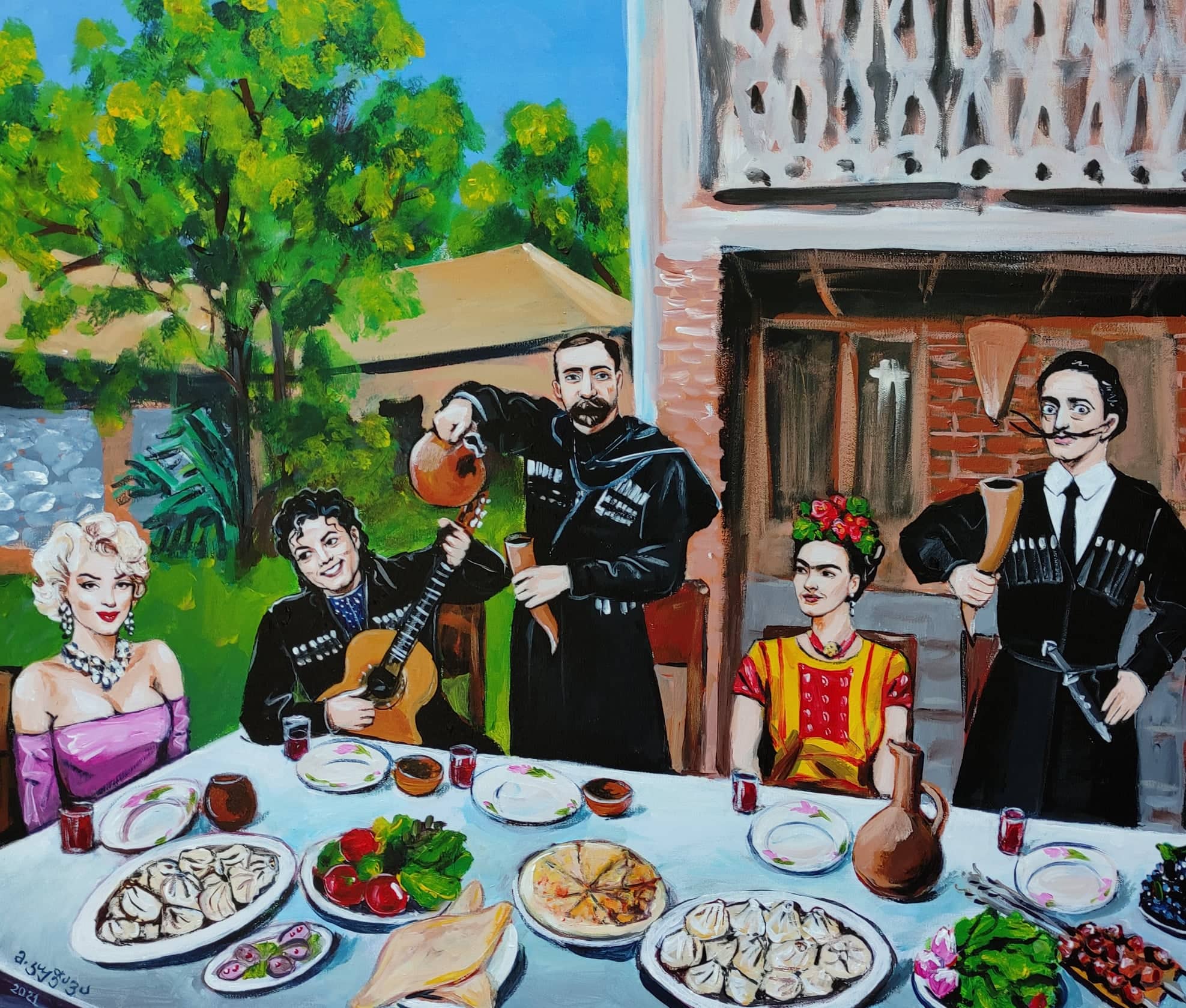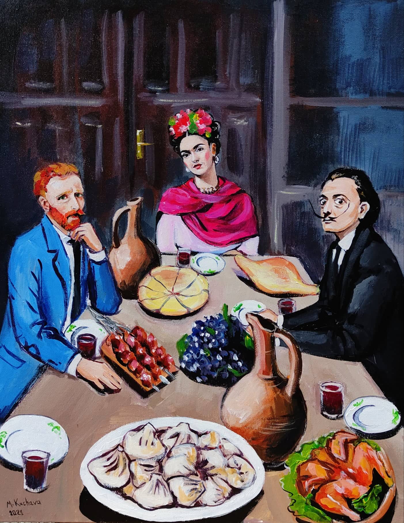თავიდან ჯერ დავხატე ფრიდა კალო, ვან გოგი და სალვადორ დალი. მალევე გაიყიდა ონლაინაუქციონზე. მეორე სერიად უკვე ნიკო ფიროსმანი დავხატე მასპინძლად, მერილინ მონრო, ჯექსონი, ფრიდა კალო, ვან გოგი და სალვადორ დალი კი სტუმრობენ ქართულ სუფრას.