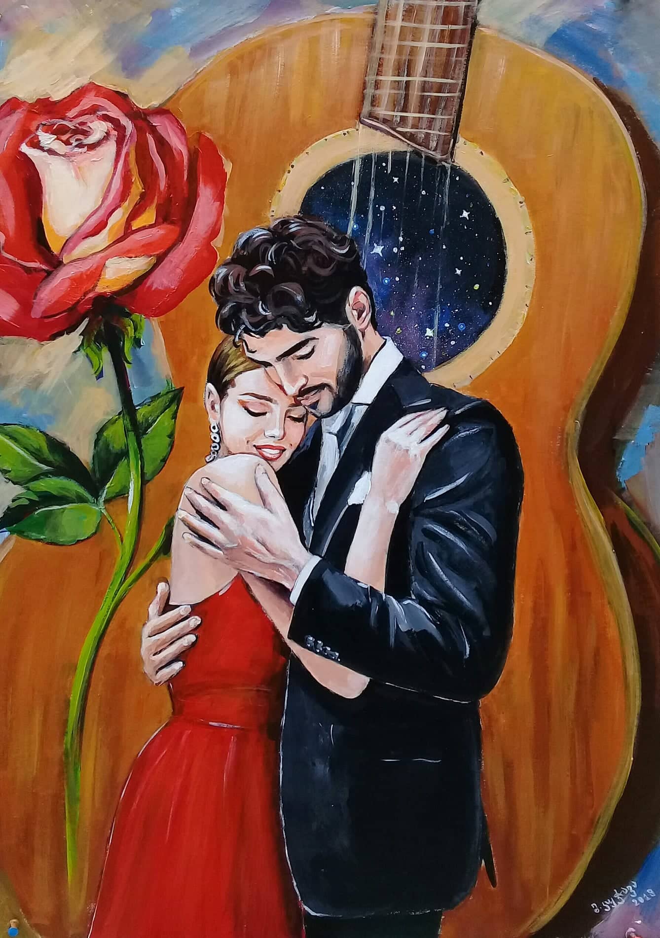 ძალიან მომწონდა ისრაელში დაბადებული არაბი მომღერლის, იშტარ ალაბინას შემოქმედება და მისი პორტრეტის შექმნა გადავწყვიტე. იგი საფრანგეთში მოღვაწეობს. პორტრეტი 2013 წელს დავხატე და ინტერნეტში განვათავსე, მალევე გამომეხმაურა მომღერალი და მთხოვა, მისთვის მეჩუქებინა, მეც გავუგზავნე საფრანგეთში ნახატი, მერე დამიკავშირდა და მადლობა გადამიხადა. ცოტა ხნის შემდეგ ჩემი ნახატი გამოაქვეყნა და ასეთი სახით ახალი 2014 წელიც მომილოცა.