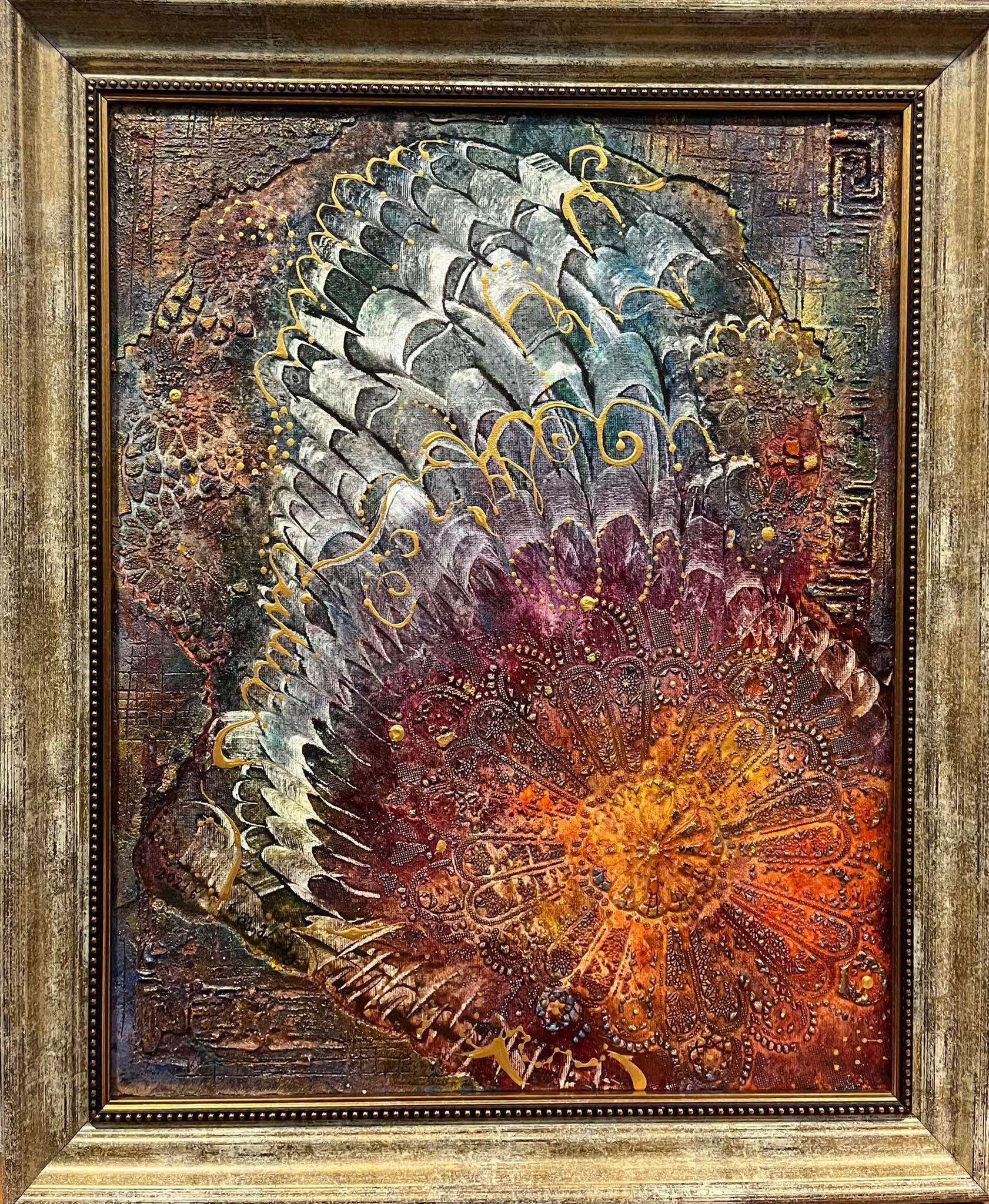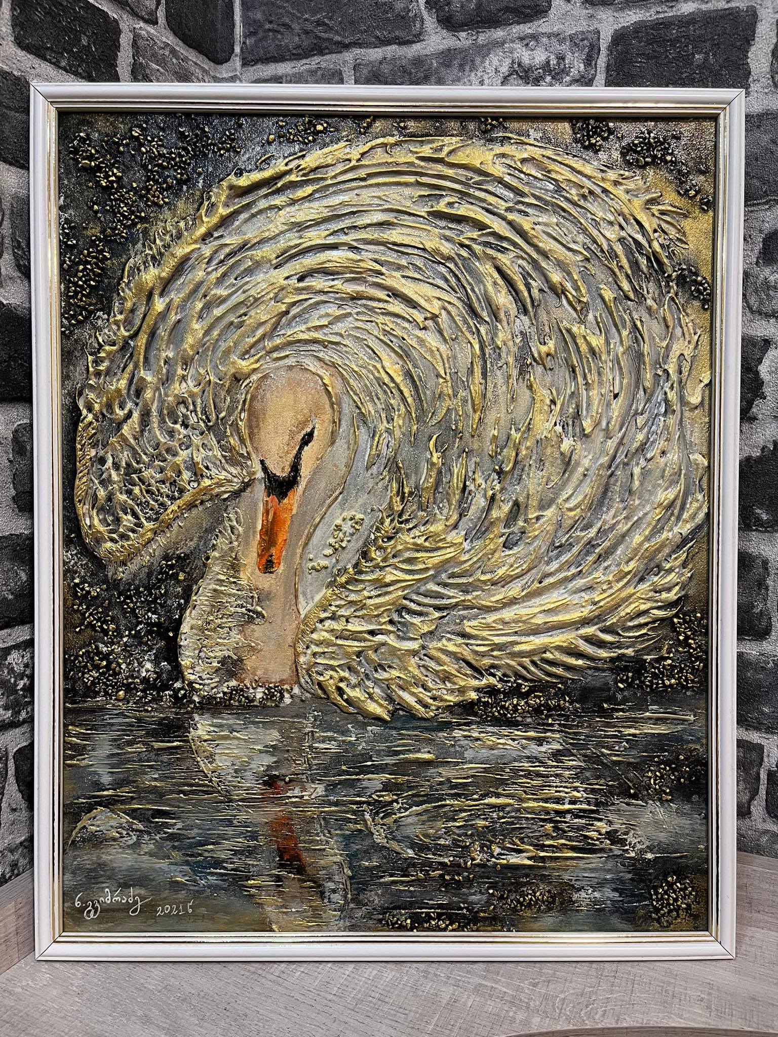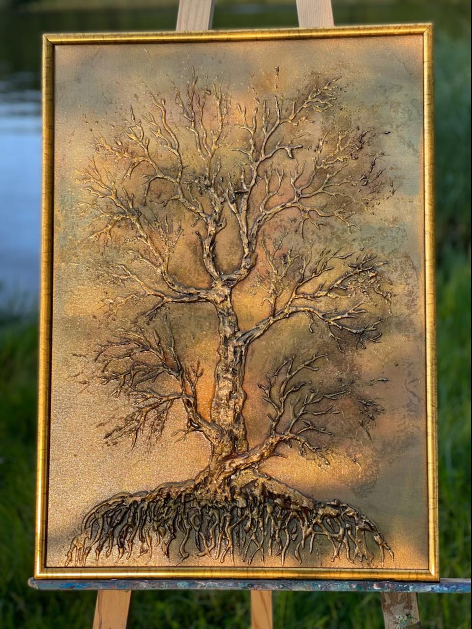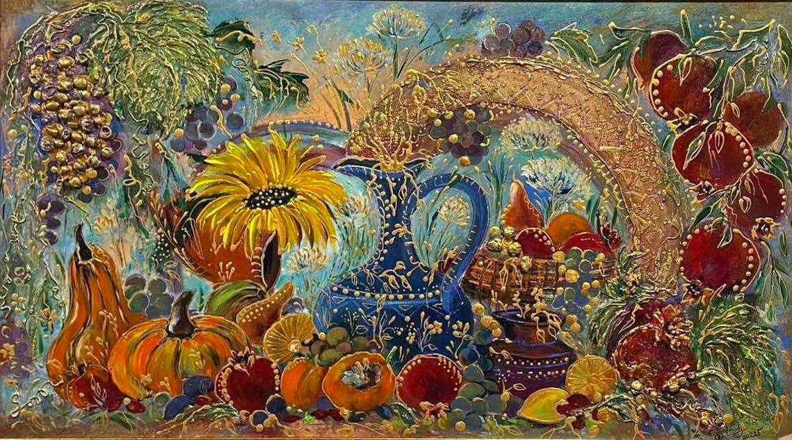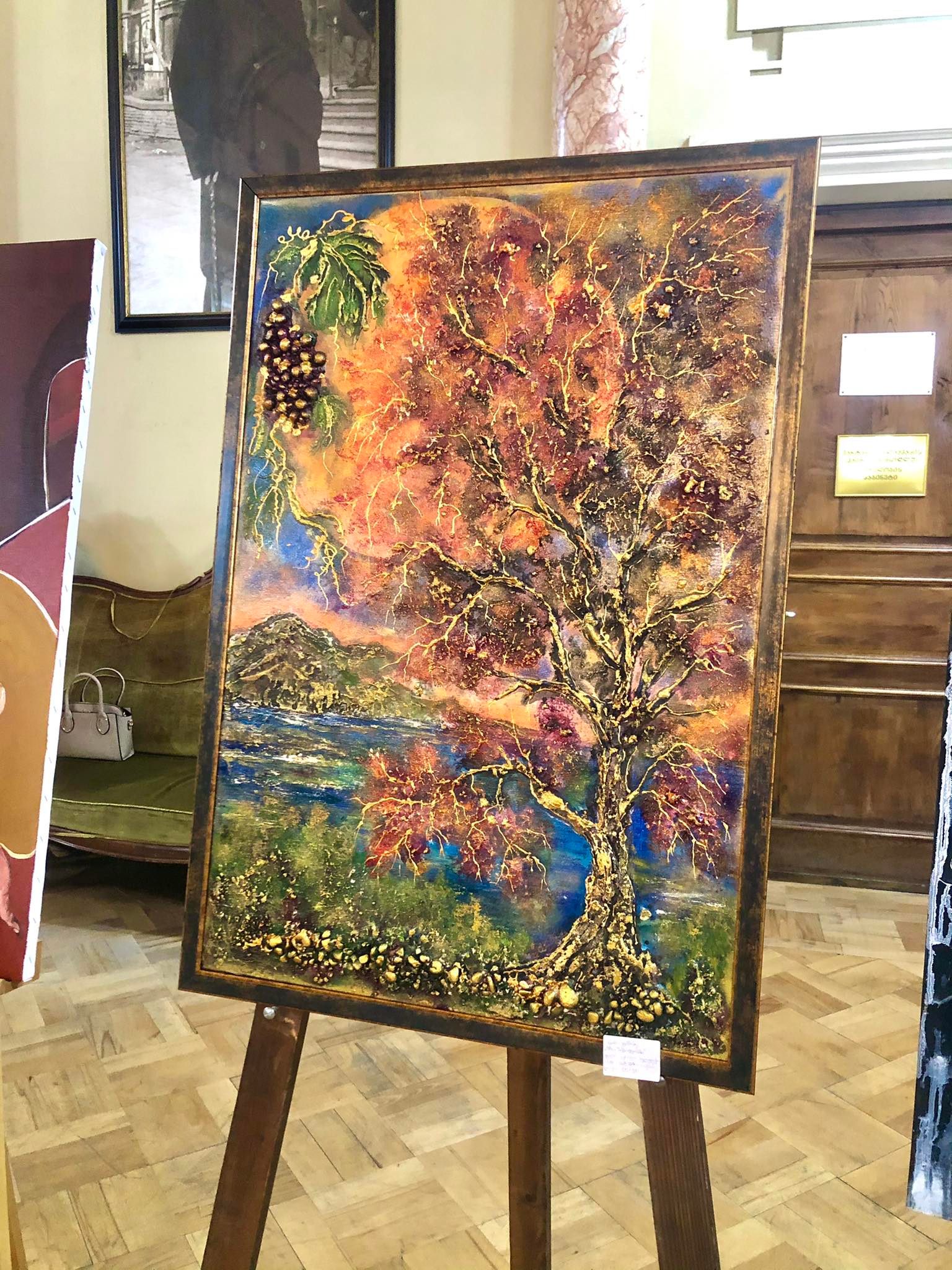 – მიყვარს რელიეფური ფაქტურა და მისი ოქროთი გამოკვეთა, რაც, ვფიქრობ, მას ძალიან უხდება. რელიეფური ფაქტურით ხატვა უფრო საინტერესოდ მიმაჩნია, რადგან ნამუშევარს ორ ეტაპად ვხატავ.