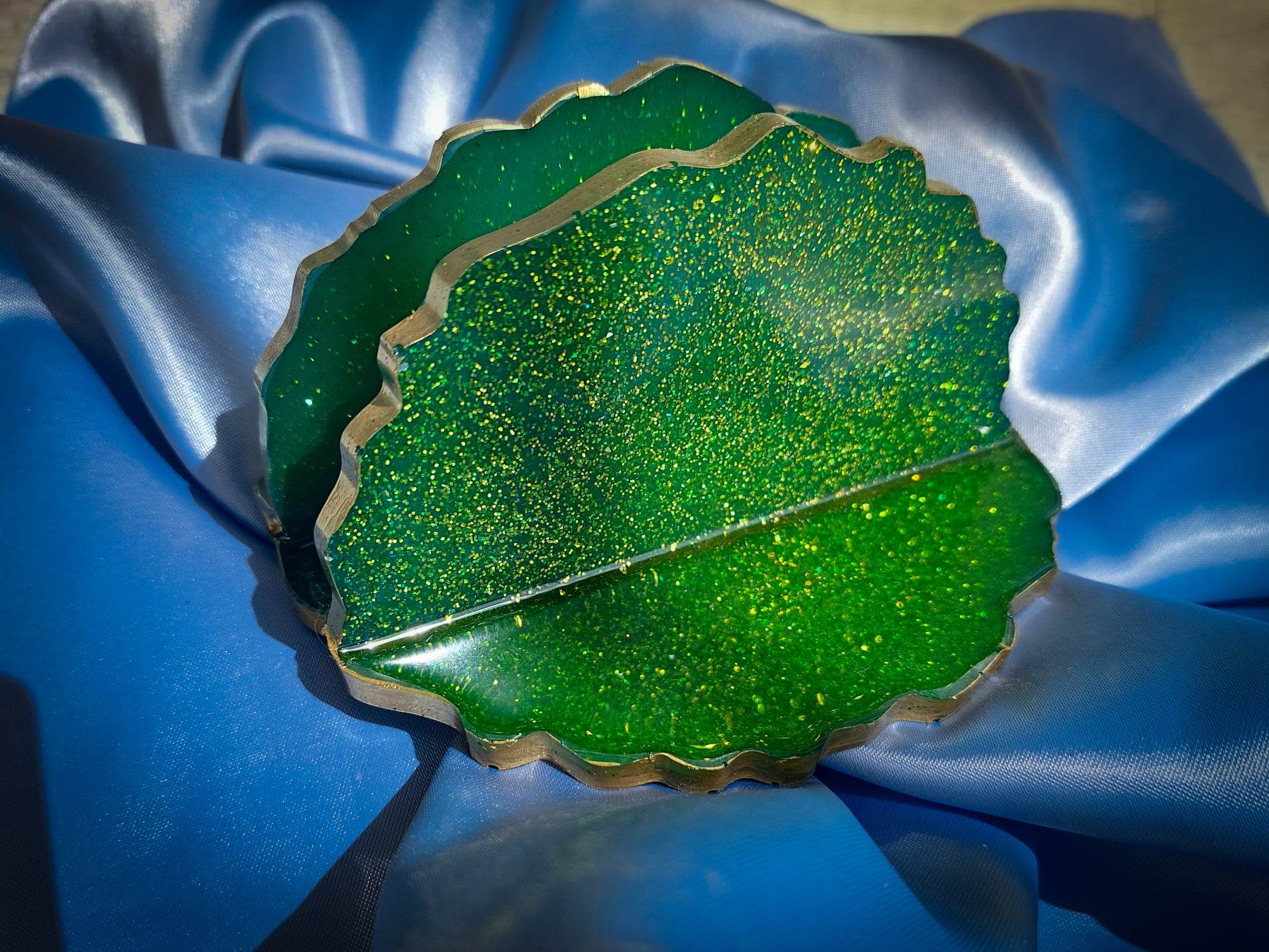 ვინაიდან ფოტოსურათის გამოყენება ეპოქსიდის ნაკეთობაში ჩემთვისაც პირველი იყო, ძალიან ვღელავდი. თუმცა მომხმარებლის ნდობის, მისი და ჩემი სურვილის გამო, ძალიან კარგი გამოსულიყო ჭიქის სადგამი, შედეგიც იდეალური გამოვიდა. მომხმარებელი ძალიან კმაყოფილი იყო და მთავარი ადრესატიც – ციმციმური ემოციით სავსე.