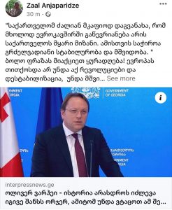 „ევროპას თითქოსდა არ უნდა აქ რევოლუციები და დესტაბილიზაცია, თუ ასეა, რატომ უჭერდნენ მხარს ფარულად ლეგიტიმური მთავრობის ჩანაცვლებას “ტექნიკური მთავრობით” და მხოლოდ მაშინ დაოკდნენ, როდესაც რევოლუციის მცდელობა ფიასკოთი დასრულდა?“, – წერს ანალიტიკოსი, ზაალ ანჯაფარიძე სოციალურ ქსელში.