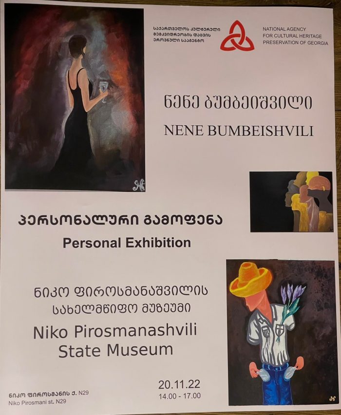 ნიკო ფიროსმანაშვილის სახელმწიფო მუზეუმში, 20 ნოემბერს, 14:00 საათზე, 11 წლის თვითნასწავლი მხატვრის, ნენე ბუმბეიშვილის პერსონალური გამოფენა გაიხსნება.