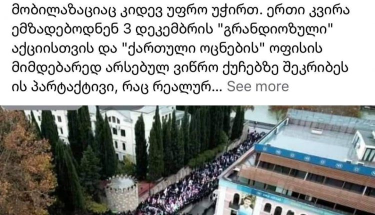 “მორღვეულმა “ნაციონალურმა მოძრაობამ” გვაჩვენა, რომ ადამიანური რესურსების ქუჩაში მობილაზაციაც კიდევ უფრო უჭირთ. ერთი კვირა ემზადებოდნენ 3 დეკემბრის “გრანდიოზული” აქციისთვის და “ქართული ოცნების” ოფისის მიმდებარედ არსებულ ვიწრო ქუჩებზე შეკრიბეს ის პარტაქტივი, რაც რეალურად შერჩათ.