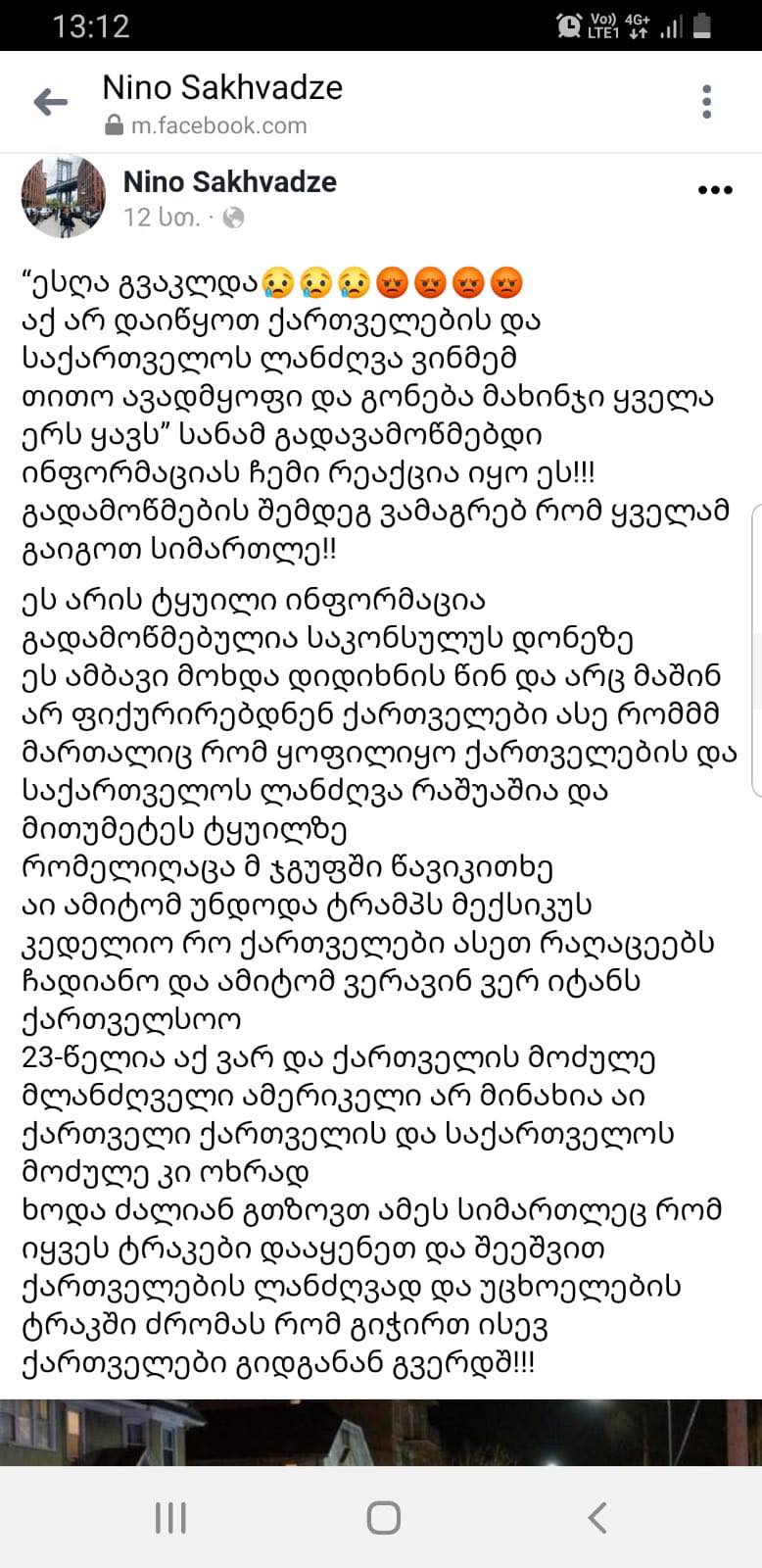 აღნიშნულთან დაკავშირებით, „კვირა“ ბრუკლინში მცხოვრებ ქართველ ემიგრანტს, მანუჩარ პირველს დაუკავშირდა, რომელმაც ჩვენთან საუბარში განაცხადა, რომ გავრცელებული ინფორმაცია მტკნარი სიცრუეა.