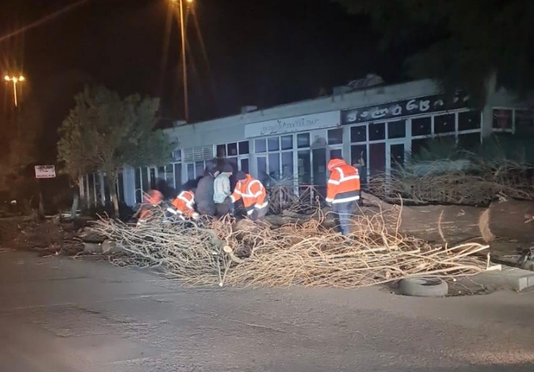 სტიქიის შედეგად წაქცეულია ხეები, დაზიანებულია ელექტრობოძები. ძლიერი ქარის შედეგად დაზიანდა ქალაქის მთავარი ნაძვის ხე.