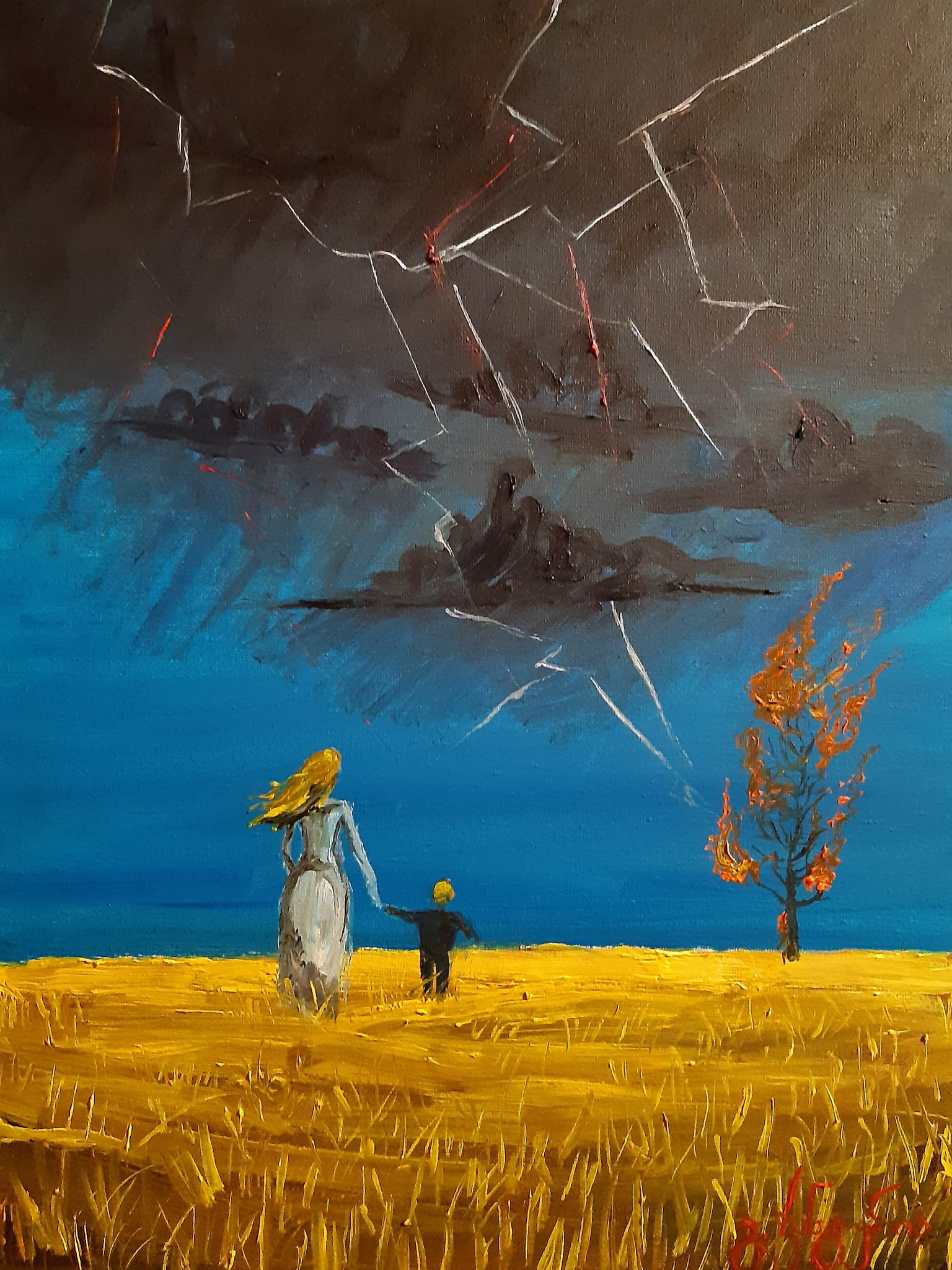 – როცა ომი დაიწყო, ყველა ვნერვიულობდით და დაძაბულნი ვიყავით, ეს ემოციები კი ტილოზე გადმოვიტანე.