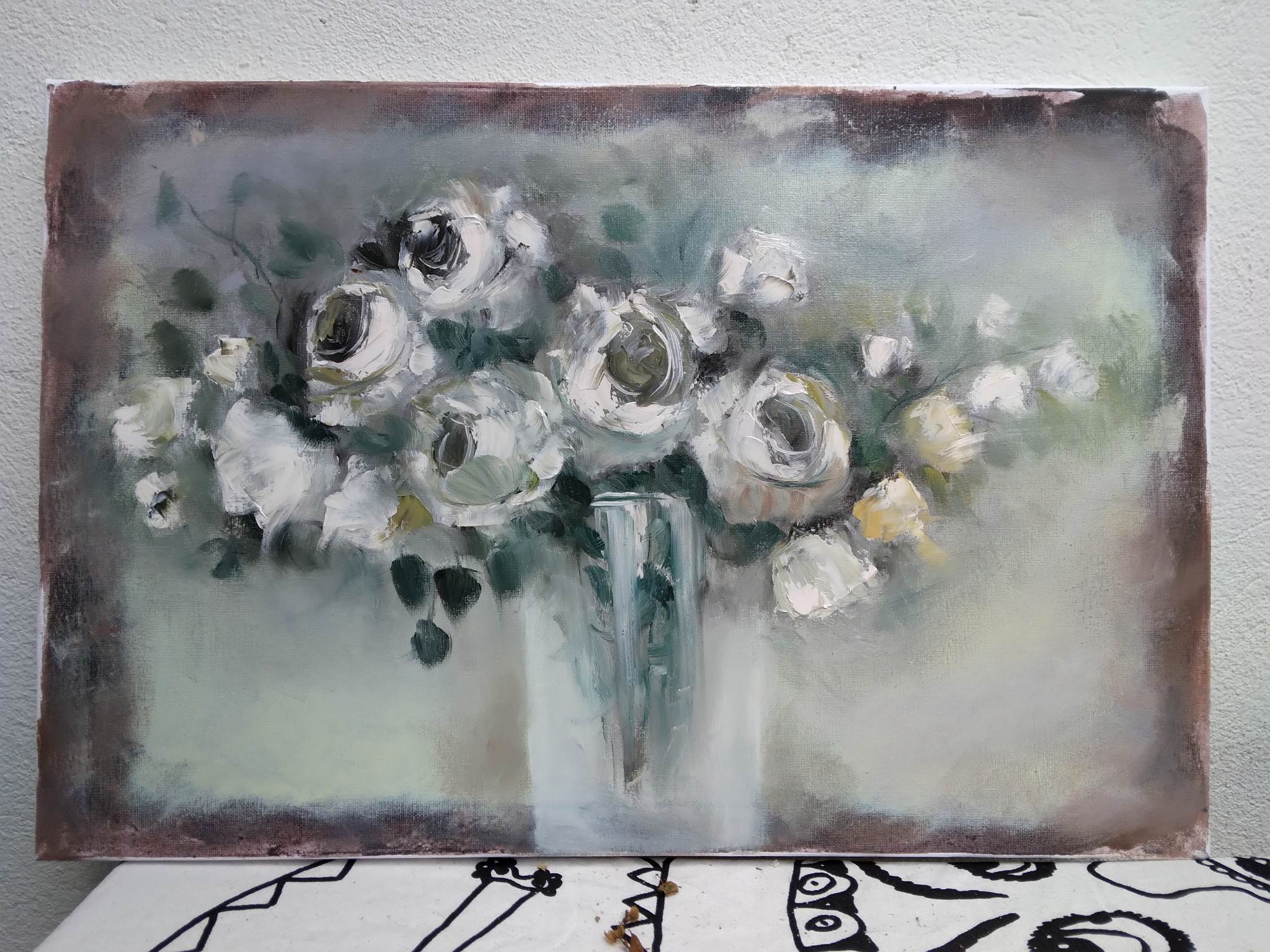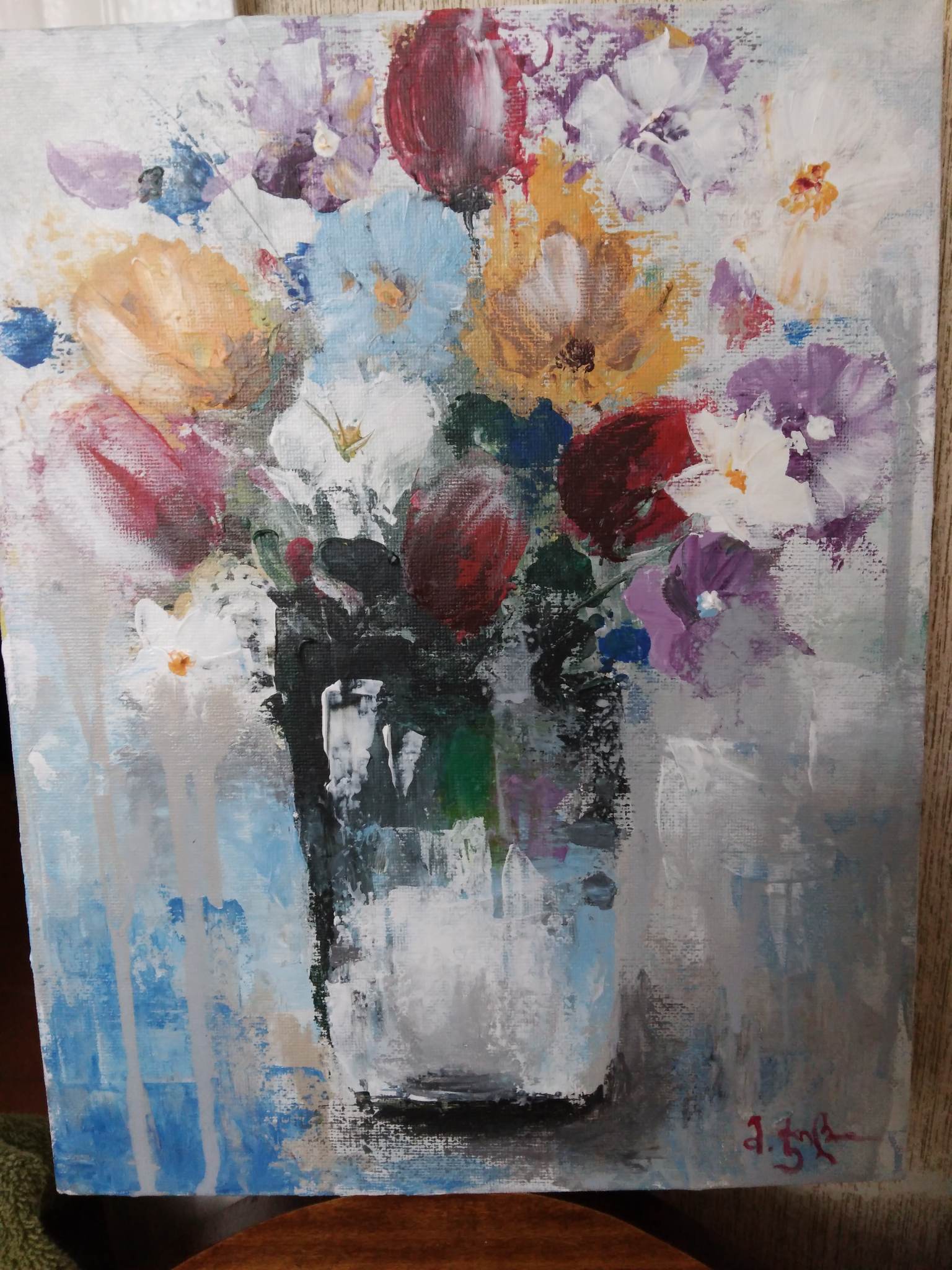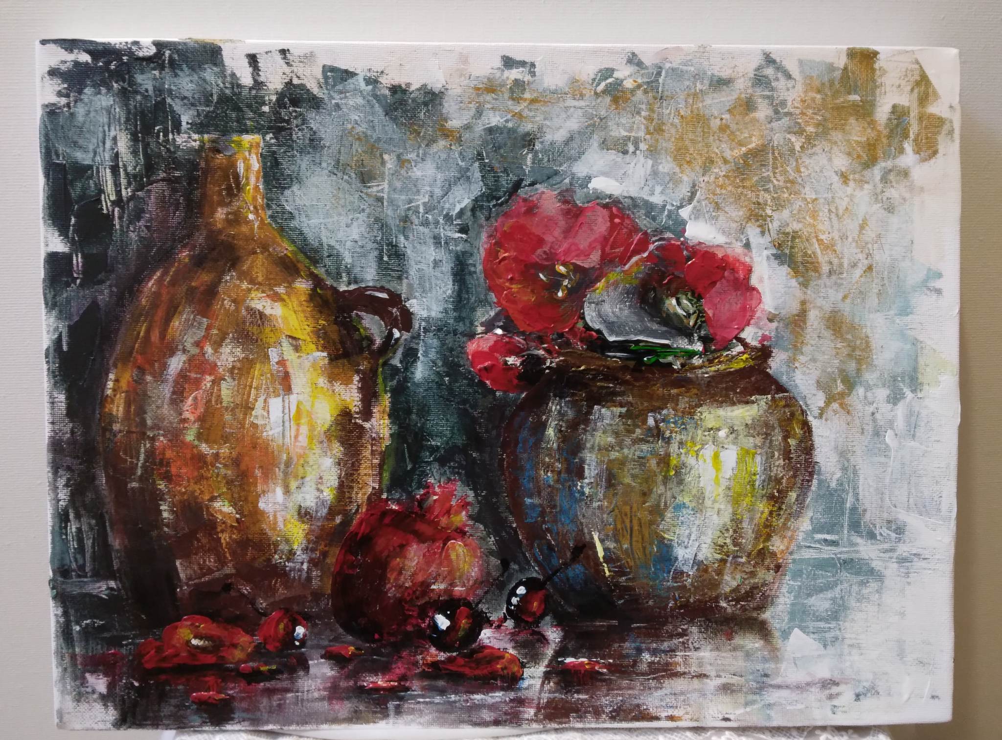 – ნატურმორტები… ყვავილები, ქოთნები… ფერის გამორჩეული ხედვა, ზუსტად შერჩეული ფონი… როგორ იქმნება ეს ნამუშევრები?