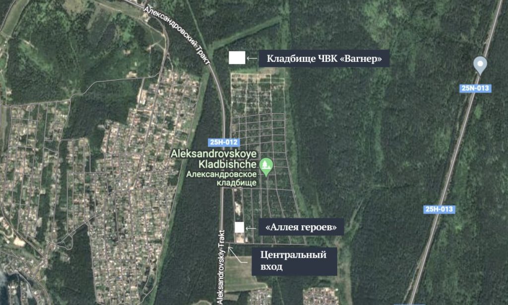 პირველი არის 13 საფლავისგან შემდგარი “გმირთა ხეივანი”, რომელიც ცენტრალურ შესასვლელთან მდებარეობს, ხოლო მეორე “ვაგნერის” დაქირავებულთა 53-კაციანი საფლავია, რომელიც სასაფლაოს შორეულ კუთხეში იძებნება.