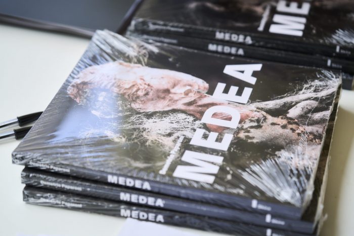 იგი იხსნება დემეტრეო პაპარონის ესეთი, აქვე გაეცნობით არტ-კრიტიკოსების: რობერტო ალაჯმოსა და ტიციანო სკარპას, ასევე გამოფენის მონაწილე მხატვრების ტექსტებს. მოგეხსენებათ, რა ვრცელია მსოფლიო მხატვრობაში მედეას მითის იკონოგრაფიული რეპერტუარი.