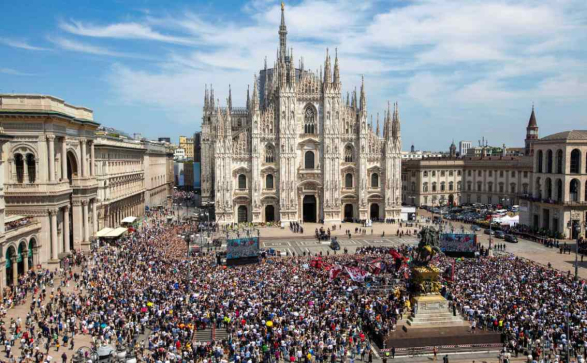 მილანში, პიაცა-დელ -დუომოს მოედანზე, ყოფილ პრემიერმინისტრ, სილვიო ბერლუსკონის ემშვიდობებიან.