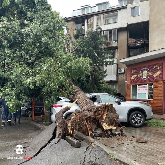 თბილისში, ძლიერმა წვიმამ და ქარმა პრობლემები შექმნა. ქარმა ზოგ ადგილას ხეები მოგლიჯა. ფოტოები სოციალურ ქსელში ვრცელდება.