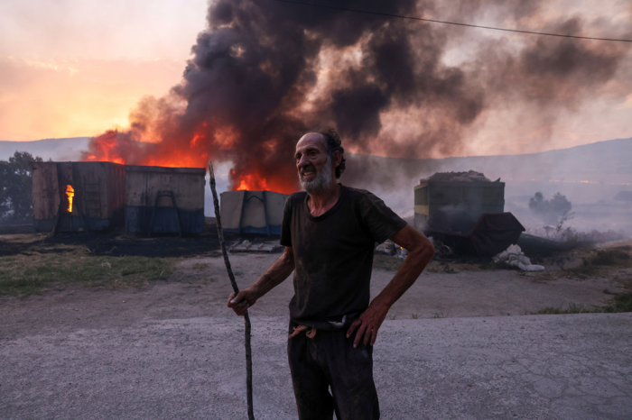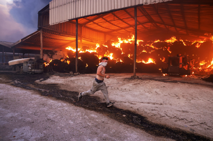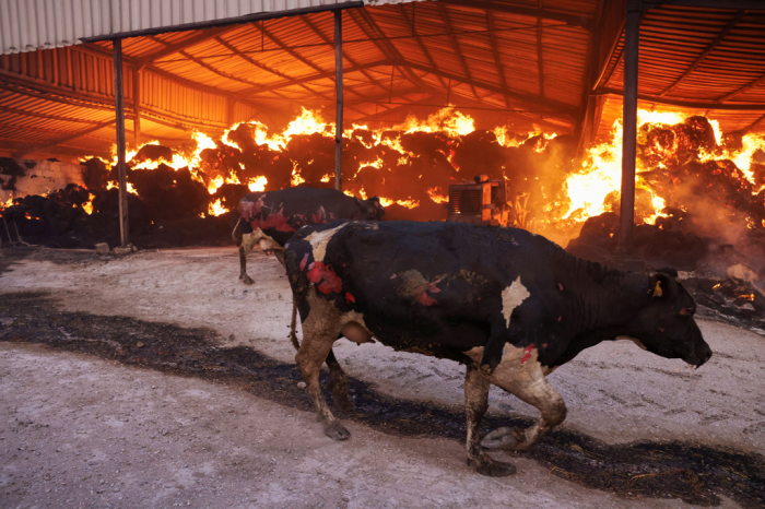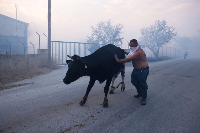 Reuters-ის მიერ გადაღებულ ფოტოებში ჩანს, რომ ფერმერი, აპოსტოლოს სტილოსი საკუთარი დაშავებული ძროხების გადარჩენას ცდილობს.