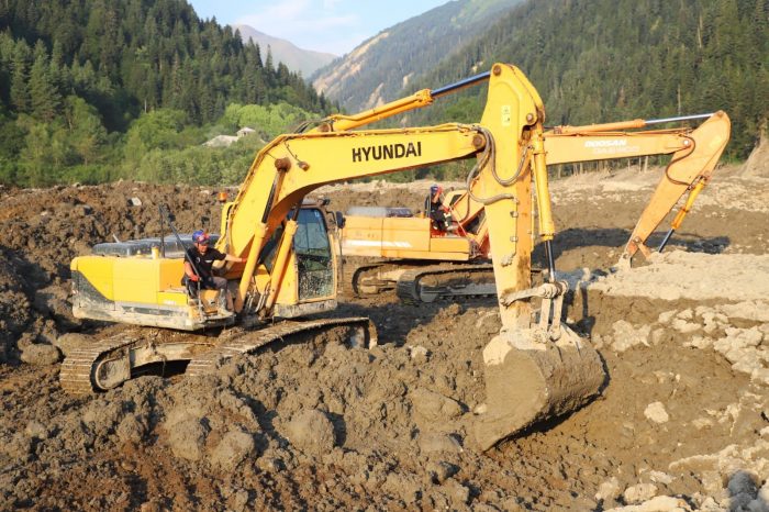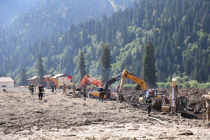 „მიმდინარეობს და გრძელდება ინტენსიური სამუშაოები, როგორც სტიქიის ზონაში, ისე რიონისა და ჭანჭახის მდინარეების კალაპოტებში. რაც შეეხება, სტიქიის ეპიცენტრს, საძიებო სამუშაოების მიზნით, მიწის მასის 60% გადამოწმებულია.