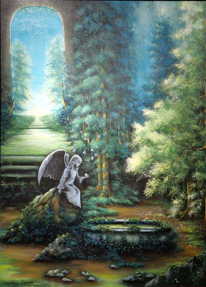 – განსაკუთრებით მიყვარს ეს ნახატი, დიდი ემოციის მატარებელია ჩემთვის. როგორც ნამუშევარშია – „ქვის ანგელოზი გზას უჩვენებს დაკარგულ სულებს სამოთხისაკენ“, დაკარგული სულები – პეპლები ჩვენ ვართ, ცოდვილი ადამიანები, პეპელასავით უმწეო, წამიერი სიცოცხლით. პეპლები ყოველთვის თან სდევენ ბავშვებს. იქნებ იმიტომ, რომ სწორედ ისინი აპოვნინებენ მარადიულობას. იქნებ ეს არის ჩვენი მარადისობის გზაც… მივყვეთ ბავშვს, ჩვენში არსებულს, უმანკოს… წმინდას…