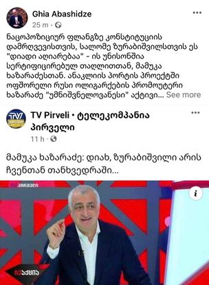“შეკითხვები ნამდვილად აღარ არსებობს – სალომე ზურაბიშვილი ნაცრადიკალების ერთ-ერთ მორიგ ტრაგიკომიკურ პერსონაჟად გაფორმდა. ანაკლიის პორტის პროექტში ოფშორელი რუსი ოლიგარქების პრომოუტერი ხაზარაძე “უმნიშვნელოვანესი” აქტივია “პროევროპელი” ზურაბიშვილისთვის”, – წერს ანალიტიკოსი გია აბაშიძე.