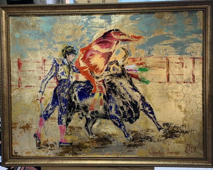 – „ჩემი ბალერინები“ ოქროს ფირფიტის იმიტაციაა, მასალა და ტექნიკა, რაც ჩემს საავტორო სტილს გამოარჩევს, სრული თუ ნაწილობრივი დაფარვით, ამ ტექნიკით სხვადასხვა სერია მაქვს შექმნილი. ოქროსფერი ფონი ჩემს ბალერინებს კიდევ უფრო გამოარჩევს, ნაზ, ჰაეროვან, პლასტიკურ ფიგურებს თითქოს უფრო დახვეწილს ხდის, ძირითად ტონებთან ტანდემში, ლურჯი და თეთრი.