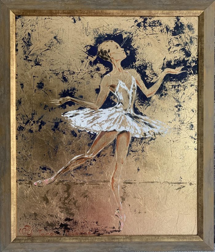 ეს სერია ასევე შესრულებული მაქვს შავ ფონზე ნაწილობრივი ოქროს დაფარვით, მაქვს ჩემი ხედვა და ხელწერა, რაც გამოარჩევს ჩემს ბალერინებს.