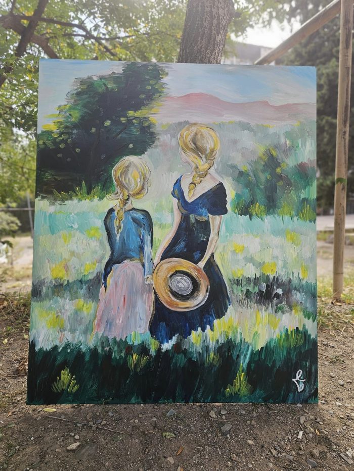 საინტერესო ისტორიით გავიხსენებდი ბოლო დაკვეთას, რომელიც საზღვრებს გარეთ მყოფმა გოგონამ შემიკვეთა დედის დაბადების დღისთვის, რადგან ბავშვობაში მათ (როგორც მითხრა) ყველაზე მეტად ერთად სეირნობა უყვარდათ. ტილოზეც ვეცადე ამ სურათის შექმნა, ჩემთვის განსაკუთრებული იყო, რადგან დედაშვილობა და დედისადმი ჩემი დამოკიდებულება განსაკუთრებულია.