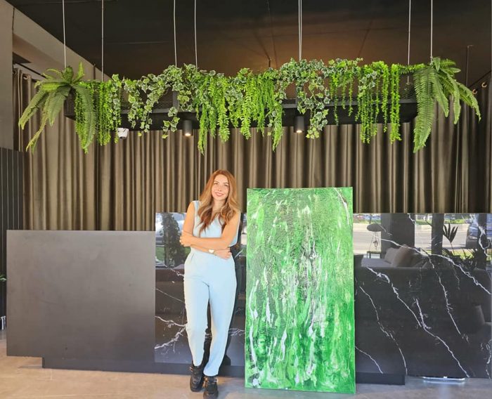 – იმის მიუხედავად, რომ უზომოდ მიყვარს გრაფიკაში ხატვა და ასევე – ქალების, მყიდველს ძალიან მოსწონს აბსტრაქცია, რომელიც იდეალურად უხდება ნებისმიერი ინტერიერის დიზაინს და მეც ვცდილობ, ამ მხრივ მეტი სიახლე შევიტანო ჩემს ნამუშევრებში.