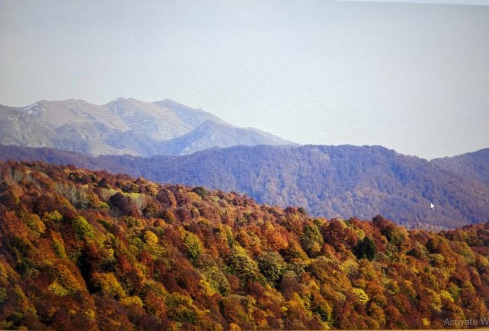 ცოტა ხნის წინ რაჭაში ვიყავი და ეს სურათები მანქანიდან, გზიდან გადავიღე. მთაზე გადადიხარ და იქიდან იშლება ძალიან ლამაზი მთები, სულ სხვადასხვანაირი ფერის იყო, შემოდგომის ხეების ოკეანე მეგონა. ამ საოცრებისგან ენა ჩამივარდა და ტირილი ამიტყდა. აპარატი ავიღე და ვეცადე, გადმომეცა ეს სილამაზე, თუმცა ფოტო ბოლომდე მაინც ვერ ასახავს იმ ყველაფერს.