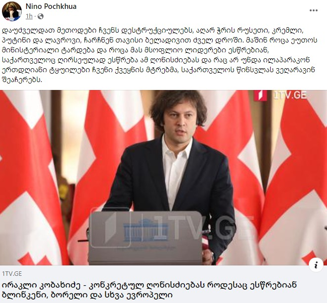 „დაუძველდათ მეთოდები ჩვენს დესტრუქციულებს, აღარ ჭრის რუსეთი, კრემლი, პუტინი და ლავროვი, ჩარჩნენ თავისი ბელადივით ძველ დროში. მაშინ, როცა ეუთოს მინისტერიალი ტარდება და როცა მას მსოფლიო ლიდერები ესწრებიან, საქართველოც ღირსეულად ესწრება ამ ღონისძიებას და, რაც უნდა ილაპარაკონ ერთდღიანი ტყუილები ჩვენი ქვეყნის მტრებმა, საქართველოს წინსვლას ვეღარავინ შეაჩერებს”, – წერს ნინო ფოჩხუა Facebook-ზე.