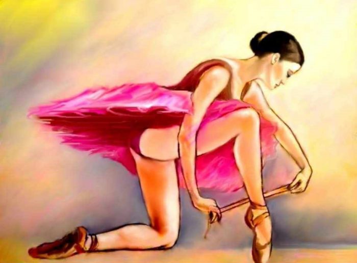– როგორც აღვნიშნე, პანდემიის დროს, 25-წლიანი ინტერვალის შემდეგ, ისევ დავიწყე ხატვა, საღებავები არ მქონდა და თვალის ჩრდილებს ვიყენებდი, თითებით ვხატავდი. ასე შეიქმნა პირველი ბალერინა და დიდი მოწონება დაიმსახურა.