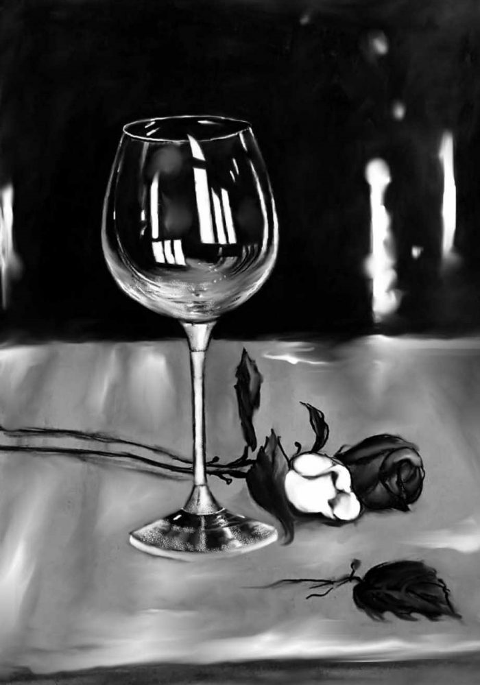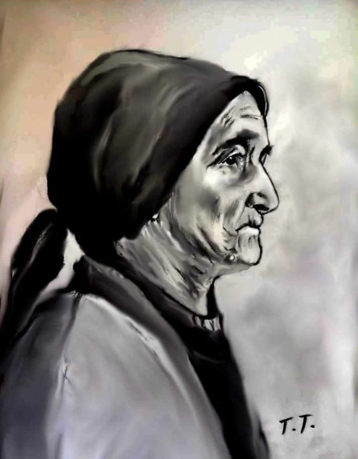 სურათი პატარა ნატეხი ფანქრით დავხატე, პანდემიის დროს ფანქარიც არ მქონდა. როდესაც გამომკეტეს, მაშინ დავიწყე ხატვა. მერე სამშვიდობოს რომ გავედით, მივამატე. ცოტა შავი არ მყოფნიდა.