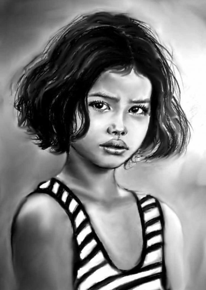 – პორტრეტებს ვხატავ წარმოსახვითაც, ნატურიდანაც და ფოტოებიდანაც. უკრაინის ომის პერიოდში, ერთ-ერთი კადრის შემდეგ, ემოციურ ფონზე შეიქმნა გოგონას სევდიანი პორტრეტი.