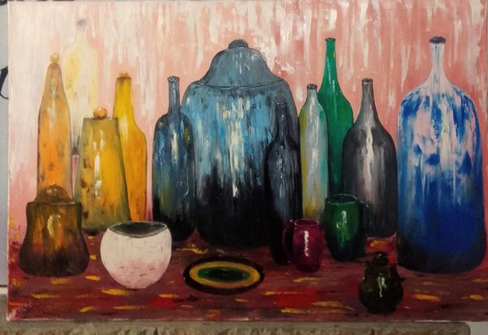3 წელია ხატავს. ნამუშევრები ზეთით, უფაქიზესი მონასმებით, ფერების გემოვნებიანი შეხამებით არის შესრულებული.