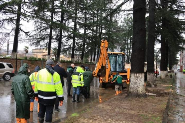 მობილიზებულია დასუფთავებისა და კეთილმოწყობის სამსახურის ტექნიკა, რომელიც რამდენიმე ლოკაციაზე მუშაობს. მიმდინარეობს სტიქიის შედეგად დაზიანებული ობიექტების აღრიცხვა, რათა მაქსიმალურად მოკლე დროში მოხდეს შესაბამისი ღონისძიებების გატარება”, – აღნიშნულია ინფორმაციაში.