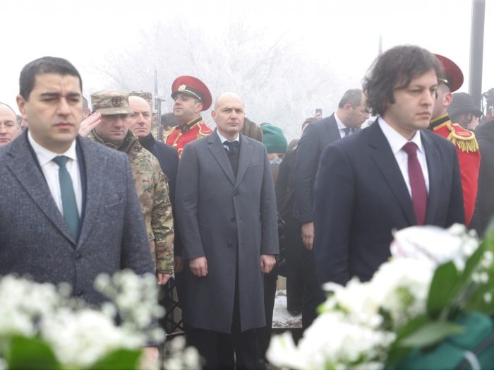 მემორიალთან პრემიერ-მინისტრი ირაკლი კობახიძე, პარლამენტის თავმჯდომარე შალვა პაპუაშვილი; ვიცე-პრემიერი, თავდაცვის მინისტრი ირაკლი ჩიქოვანი; თბილისის მერი, კახა კალაძე და საკანონმდებლო ხელისუფლების წარმომადგენლები იმყოფებოდნენ.