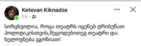 „სირცხვილია, როცა თეატრს იყენებ ტრიბუნად პოლიტიკისთვის. მეცოდებით, ეგ თეატრი და ხელოვნება გგონიათ!