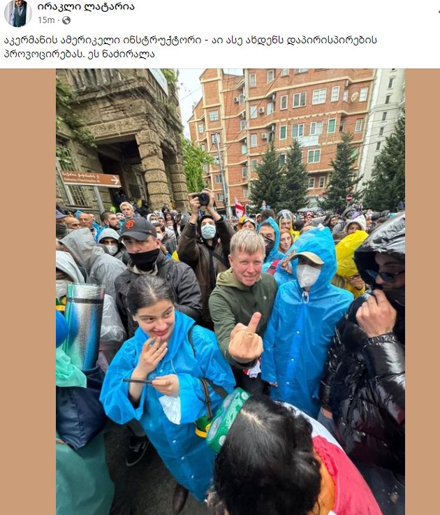 “აკერმანის ამერიკელი ინსტრუქტორი – აი, ასე ახდენს დაპირისპირების პროვოცირებას. ეს ნაძირალა”, – წერს ირაკლი ლატარია Facebook-ზე.
