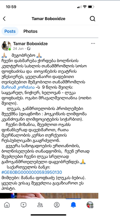 მიმდინარე წლის 24 ივნისს სოციალურ ქსელში გავრცელდა ინფორმაცია, რომ 9 წლის ლუკას ჰქონდა ჯანმრთელობის სერიოზული პრობლემა (ჰოჯკინსის ლიმფომა კვანძოვანი ლიმფოციტების სიჭარბით) და სჭირდებოდა დახმარება მკურნალობის საზღვარგარეთ გასაგრძელებლად. https://www.facebook.com/share/p/2hMzz9QYpUKeLCQv/